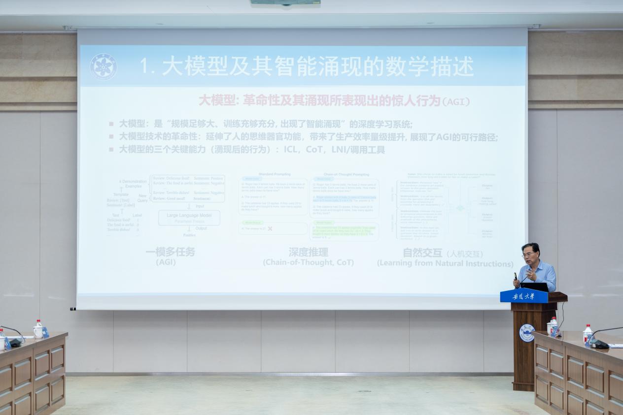 4月25日,中国科学院院士、西安交通大学教授徐宗本应邀来我校交流,在材料科学大楼A101作题为《大模型极限理论:解读智能涌现与尺度律》的专题报告。报告会由校党委副书记、校长孙长银主持,学校相关专业教师和学生参加报告会。